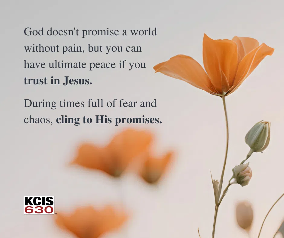 God doesn’t promise a world without pain, but you can have ultimate peace if you trust in Jesus. During times full of fear and chaos, cling to his promises. If you are in need of a reminder today, here are 5 promises to cling to when you find yourself full of uncertainty, anger, distrust or anxiety.