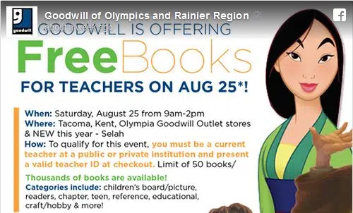 Mark your calendar because the day is almost here. If you are an educator you can get up to 50 books free for your classroom. This is a very popular event so you’ll want to plan to go early!