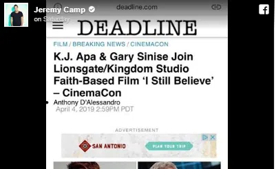 A new movie called I Still Believe is in the works based on the faith journey and personal tragedy of Jeremy Camp. We look forward to hearing more about this as it progresses! Jeremy shared this tidibit today.